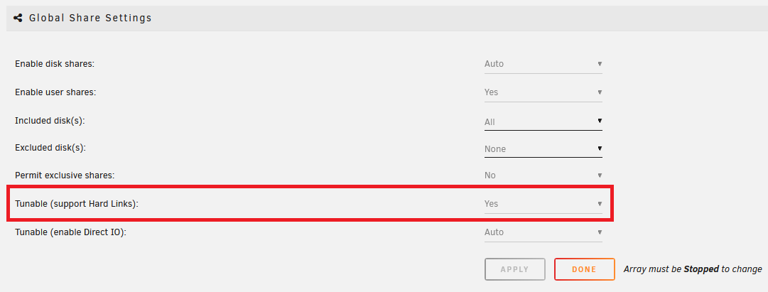 Yeson step (2) (unRAID 6.11 tab above). If not using a cache drive, keep this option disabled.Hardlinks will stay intact if you're using a cache